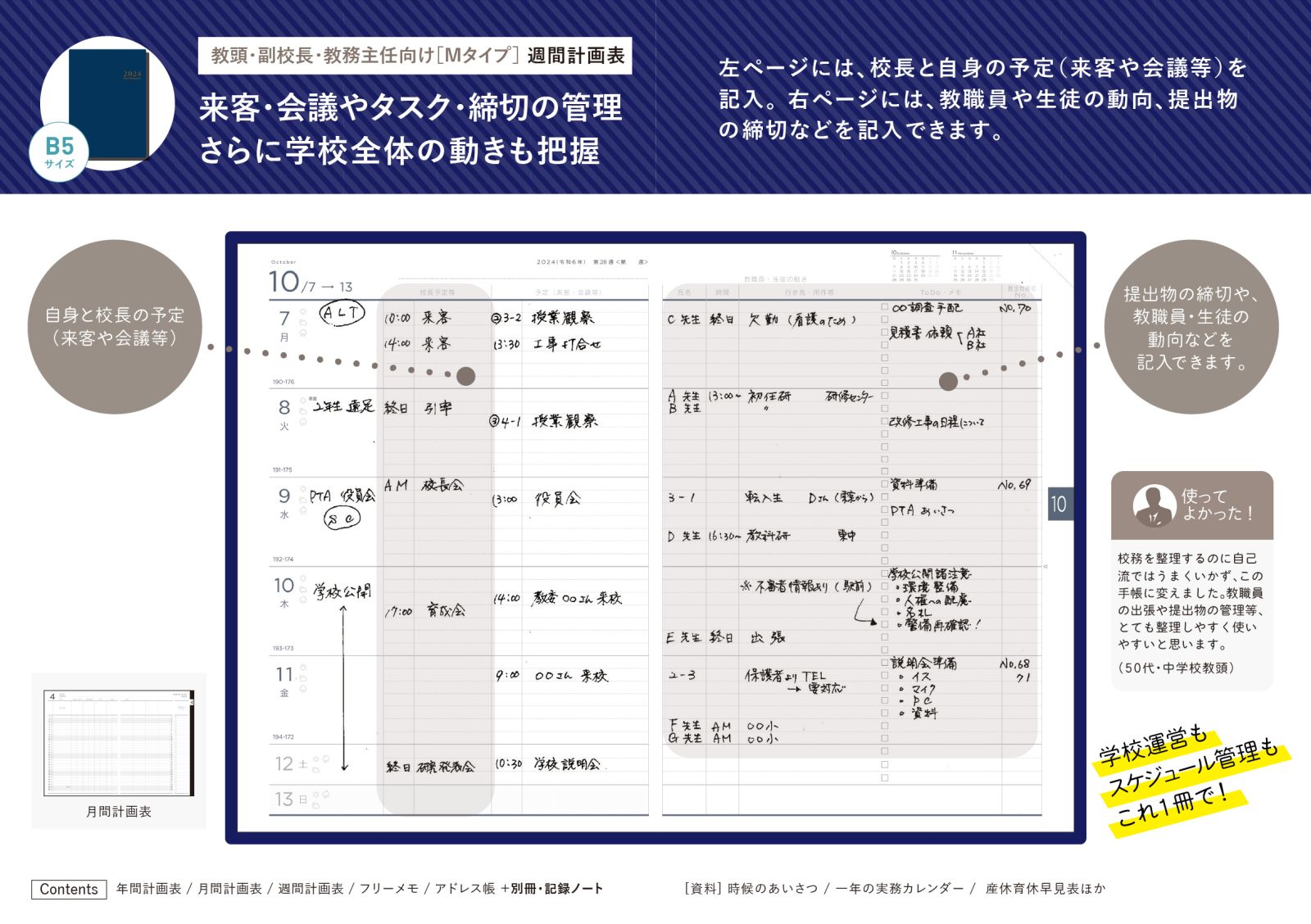 忙しい毎日が変わる先生のためのスケジュール管理&記録ノート。