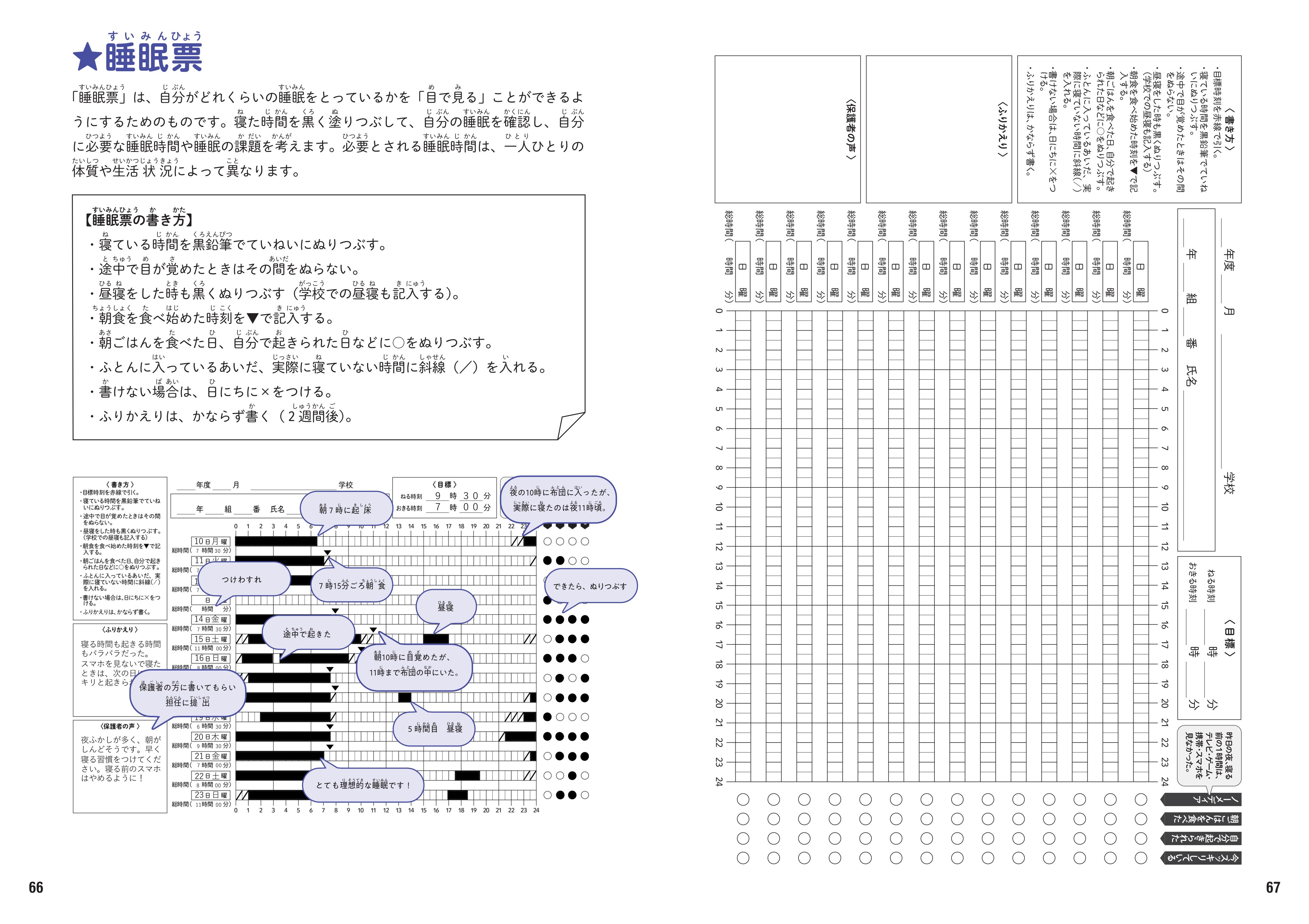 学年に応じて学びやすい!自分の睡眠を見直す「睡眠票」「チェックリスト」付き!