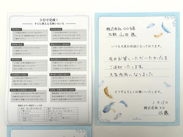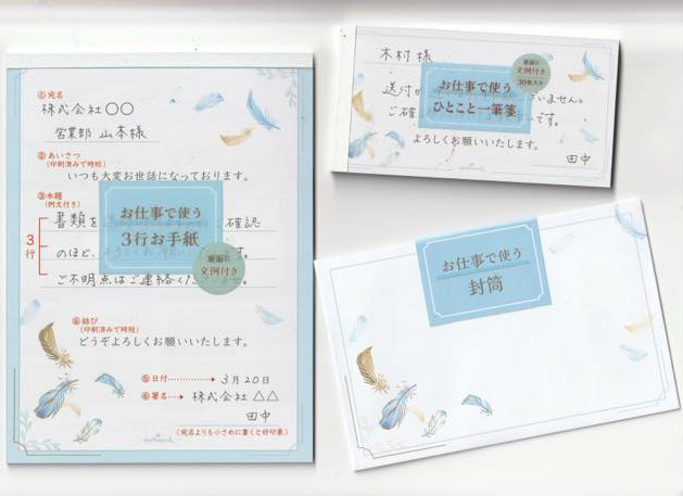 「便箋」の特徴は、自分で記入する部分が宛名・自分の名前と要件が「3行」のみで完結する点です。